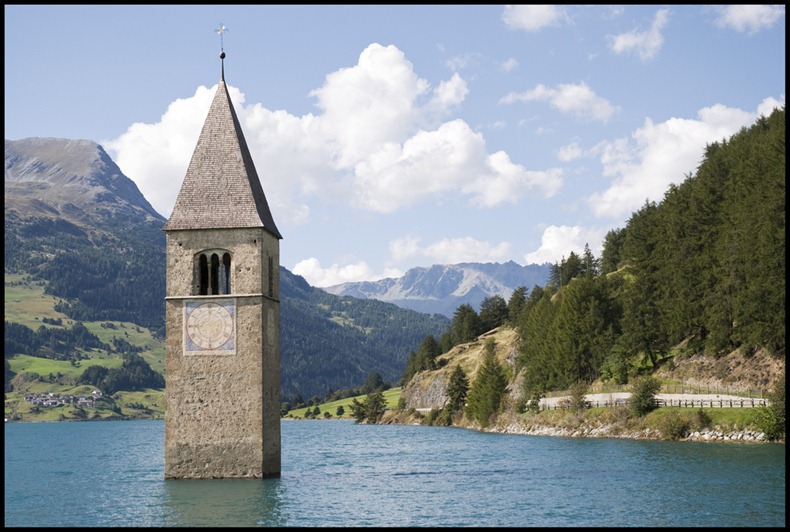 Reschensee, only a few miles from the Swiss and Austrian borders, in